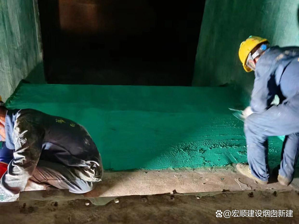 清潔:用高壓水槍清除煙囪內壁浮灰、油污及松散混凝土,確保表面無雜質。